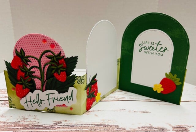 Top Right: Hello Friend (Inside: Life is Sweeter With You and Love You Lots), Fun Fold – portrait style – may require more than a Forever Stamp to mail